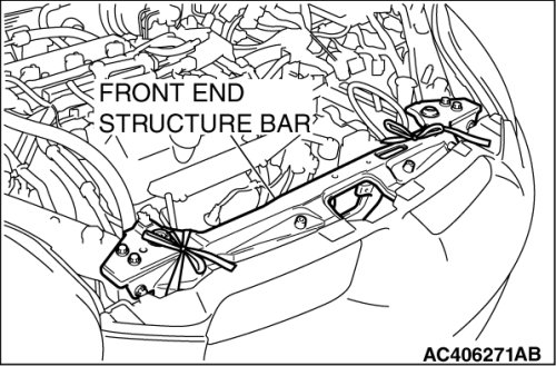 (1) Set special tool MB991895 to the strut mounting nuts (A and B) and front end structure bar assembling bolts (C and D) as shown.