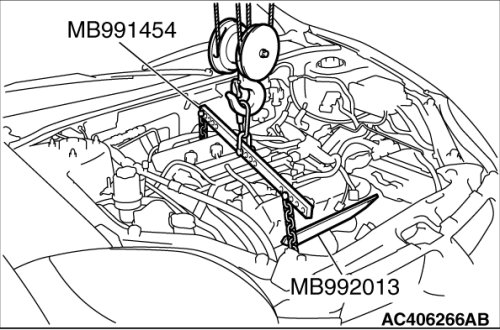 2. [Engine hanger MB991895 is used]