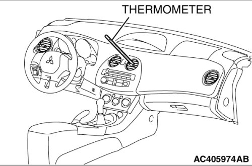 5. Wait until the air outlet temperature is stable (approximately 10 minutes after the A/C starts), and measure dry-bulb/wet-bulb temperatures at the air outlet and the air intake.