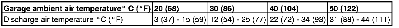 6. If the air outlet temperature is in the range specified by the table below, it is judged normal. If the temperature is outside the permissible range in the table below, refer to the refrigerant gas pressure inspection result, and check each section according to the diagnosis chart of refrigerant system.