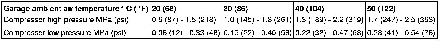 12. Measure the high pressure/low pressure, and check that the measurement is within the permissible range of the table below. If the value is outside the permissible range, refer to the cooling performance check result, and perform a check according to the diagnosis chart of refrigerant system.