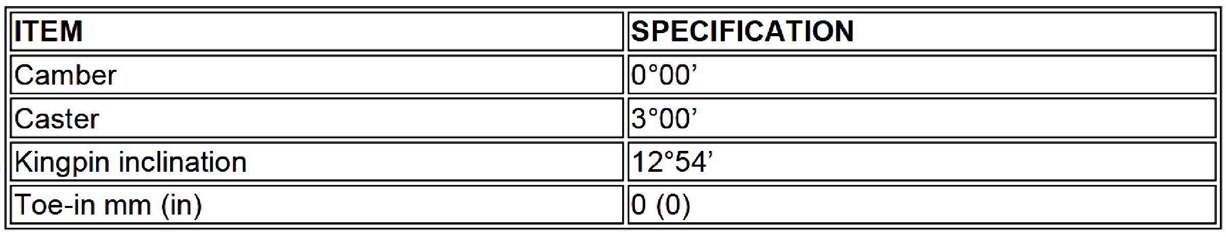 Wheel Alignment Specifications
