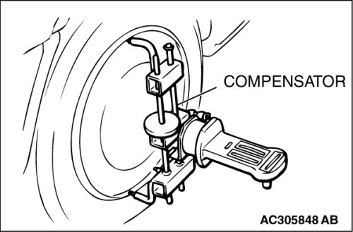 For vehicles with aluminum wheels, attach the camber/caster/kingpin gauge by using a compensator.