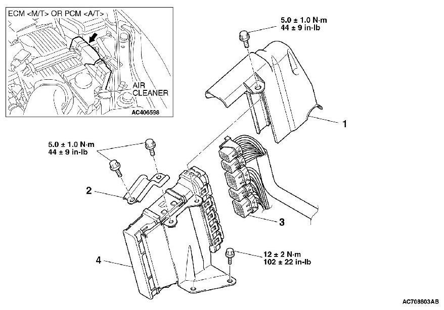 - Do not replace the ECM [M/T] or PCM [A/T] and the ETACS-ECU simultaneously. Always replace either one of the ECUs first, and register the encrypted code Immobilizer System ). Then, replace the other ECU.