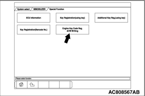8. Select "Engine Key Code Reg. & VIN Writing."