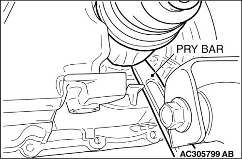 - Do not pull on the drive shaft; doing so will damage the PTJ; be sure to use the pry bar.