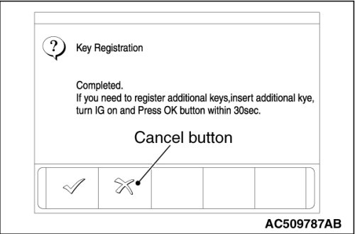 - When the key cannot be registered using scan tool MB991958, refer to Inspection Procedure 2 "The ignition key cannot be registered using scan tool Inspection Procedure 2 .