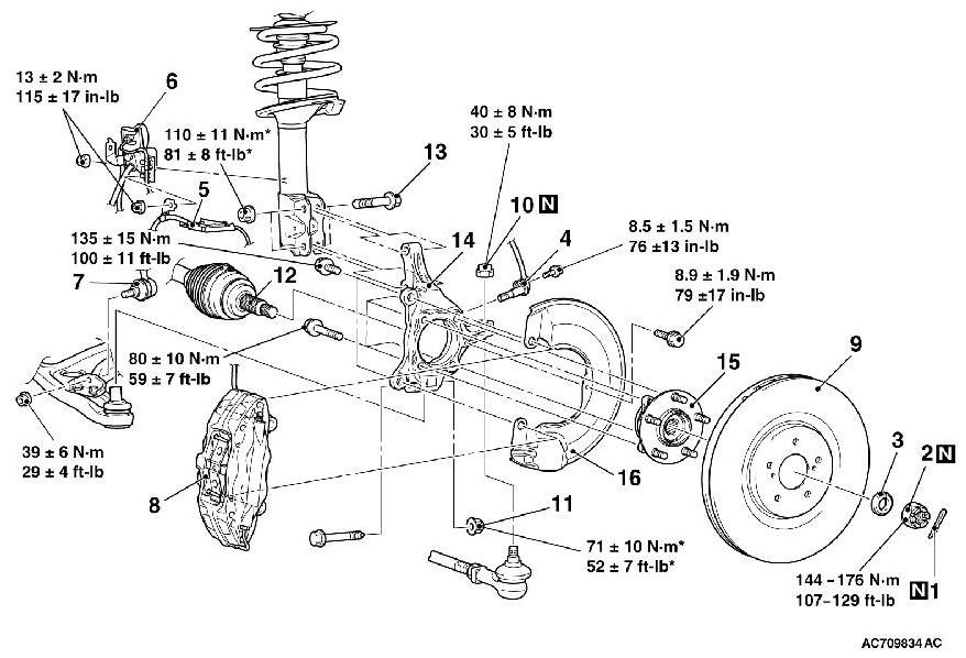 Tightening torque: 144 - 176Nm (107 - 129 ft-lb)