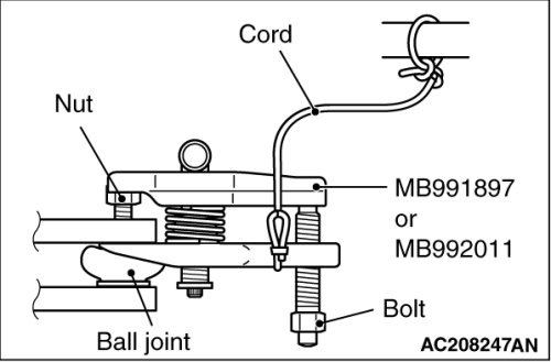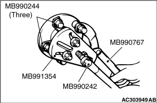 Install special tool MB991897 or MB992011 as shown in the figure.