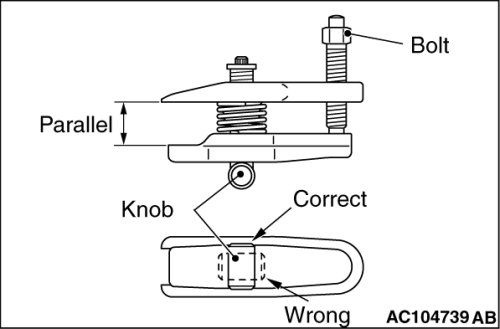 To adjust the special tool jaws to be parallel, set the orientation of the knob as shown in the figure.