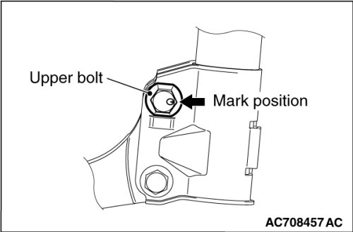 Locate the knuckle and strut assembly upper connection bolt's marking position as shown in the figure and tighten it.