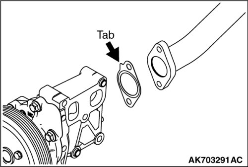 Install a new gasket so that the tab is positioned as shown in the illustration.