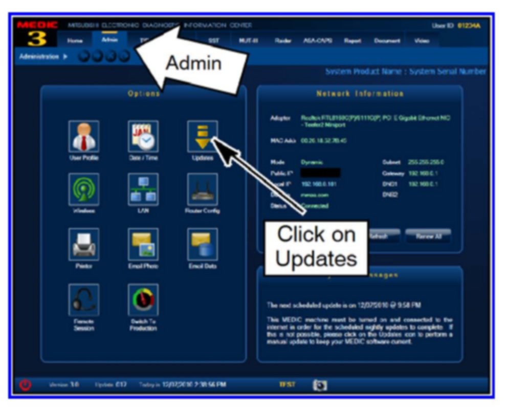 3. Select the MEDIC 3 Admin tab and click on "Updates."