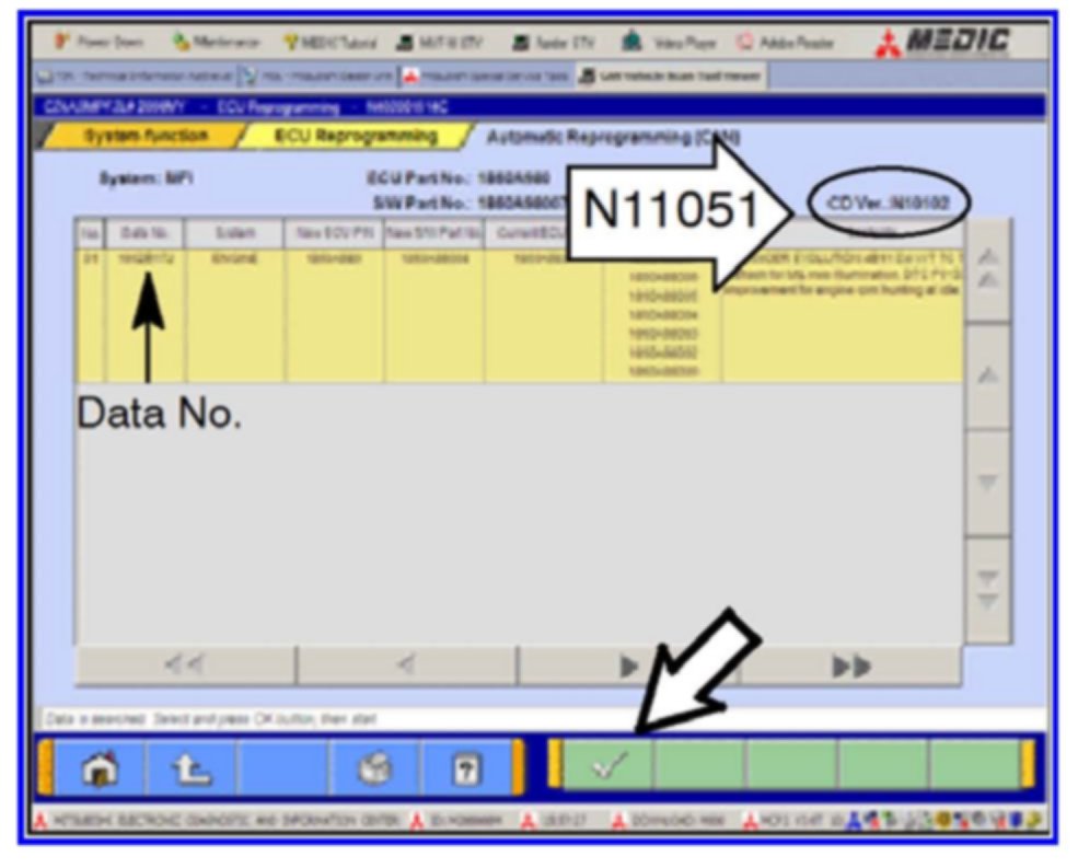 Reprogramming the ECM with the latest database (i.e. N11051) includes all past and current reprogramming for TSBs to this or any earlier database numbers. You do not need to reprogram the ECM for each TSB.