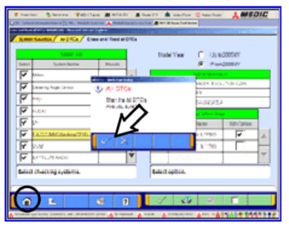 b. If DTCs do not return click the check mark to clear the window and then click the Home icon in the lower left of the screen to return to the main menu.