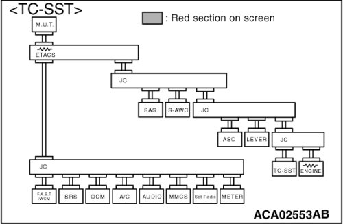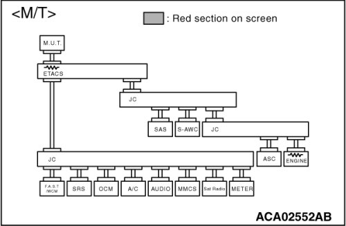 (3)Diagnose CAN bus lines, and check if the scan tool MB991958 screen is as shown in the figure.