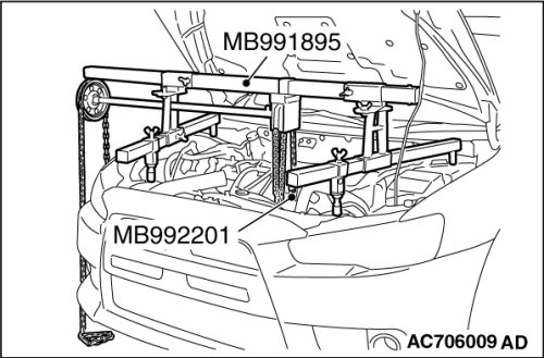 3. [Engine mechanical hanger (special tool MB991895) is used]