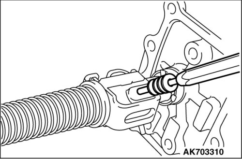 Using special tool, MB990984, install the slide ball bearing in alignment with the control housing end face taking care not to let the bearing protrude to the oil seal installing surface.