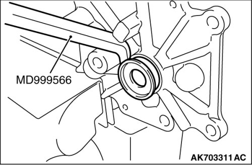 Using special tool, MD999566, remove the oil seal.