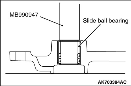 Using special tool, MB990947, remove the slide ball bearing.