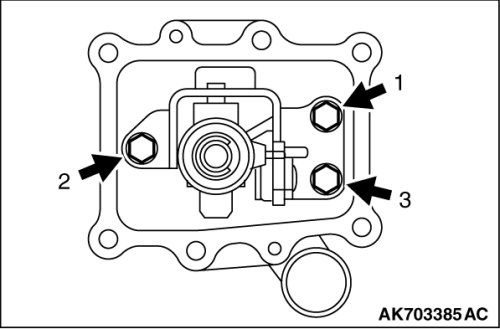 Tighten the stopper bracket mounting bolts to the specified torque in the illustrated order.