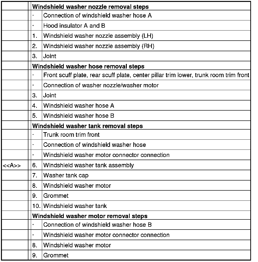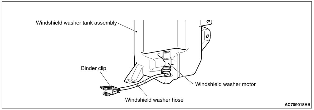 When removing the windshield washer tank assembly, close the windshield washer hose by a binder clip as shown, to prevent the windshield washer from flowing out.