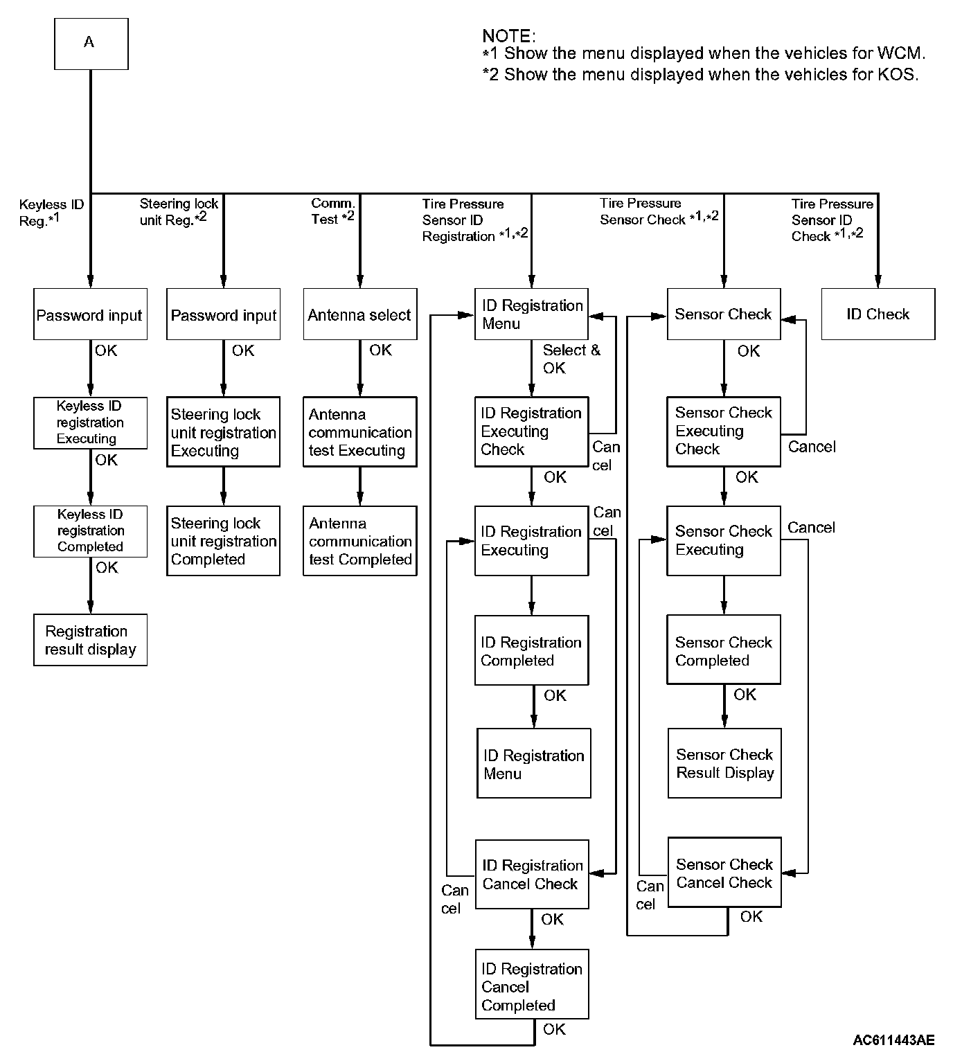 - "Keyless ID Reg.": When the ignition key is replaced or added as a single unit and the immobile and keyless key assembly.