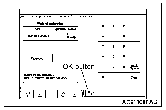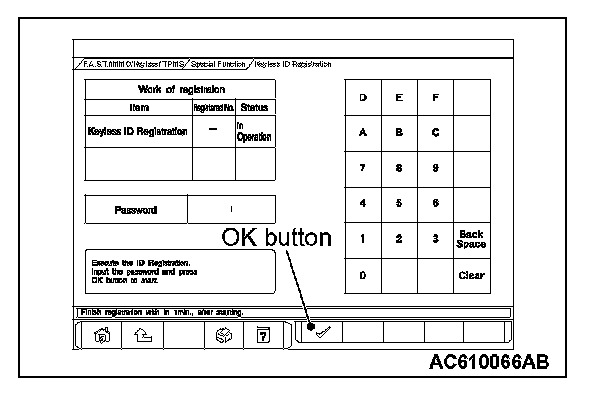 1. On the "Keyless ID Reg." screen, enter the password and press the OK button.