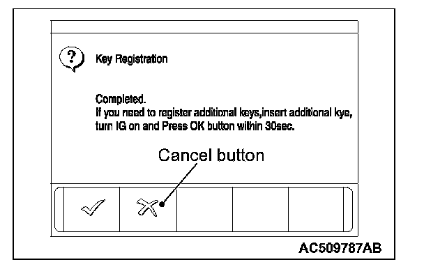NOTE: When the key cannot be registered using scan tool MB991958, refer to Inspection Procedure 2 "The ignition key cannot be registered using scan tool Inspection Procedure 2.