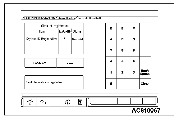 3. Push the OK button after "Keyless ID Registration was finished." is displayed.