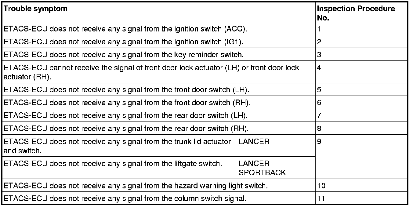 TROUBLE SYMPTOM CHART FOR INPUT SIGNAL