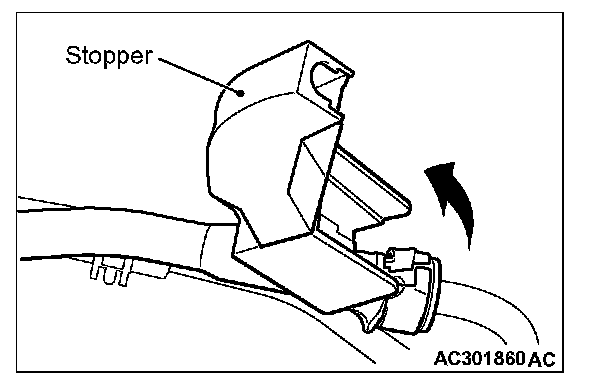 After connecting the fuel high-pressure hose, slightly pull it in the pull-out direction to check that it is installed firmly. In addition, check that there is approximately 1 mm (0.04 inch) play. After the check, install the stopper securely.
