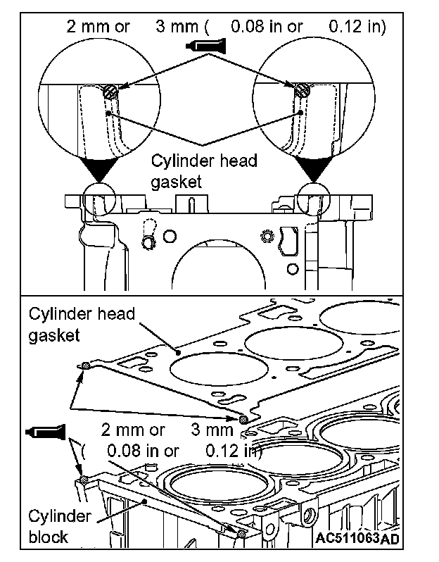 ^ Install the cylinder head gasket immediately after the application of sealant.