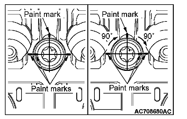 (2) Apply paint marks to the head of cylinder head bolt and the cylinder head.