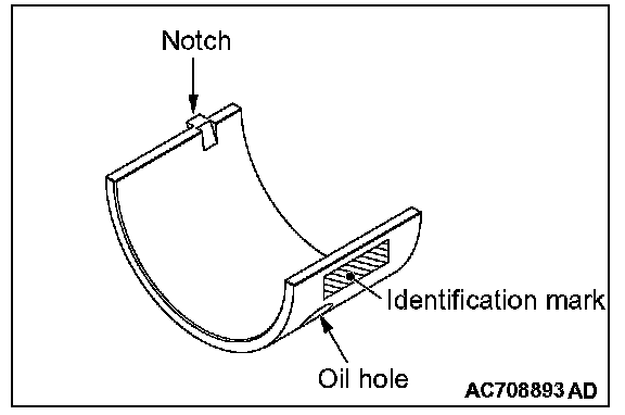 When replacing the camshaft bearing, according to the identification mark of front camshaft bearing cap in the table below, select a camshaft bearing with the corresponding size. Note that the identification mark of camshaft bearing is stamped on the place shown in the figure.