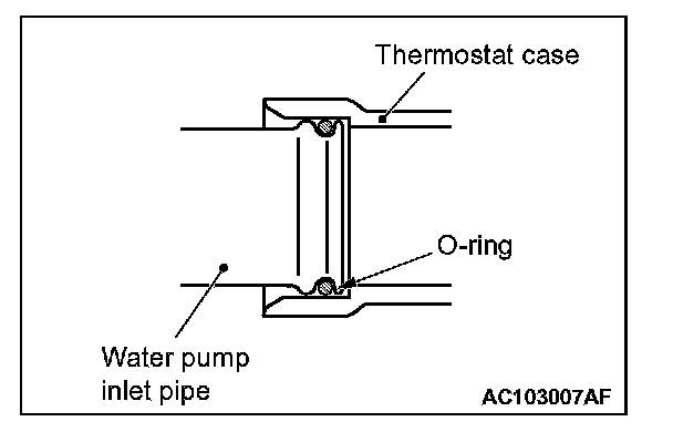 Fit the O-ring in the water pump inlet pipe groove, wet the O-ring circumference or the pipe mounting area inner wall, and then insert the O-ring.