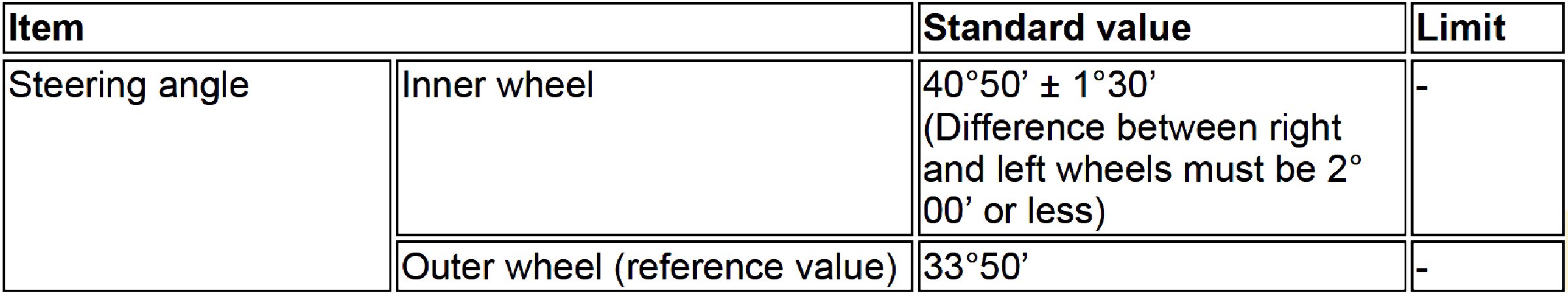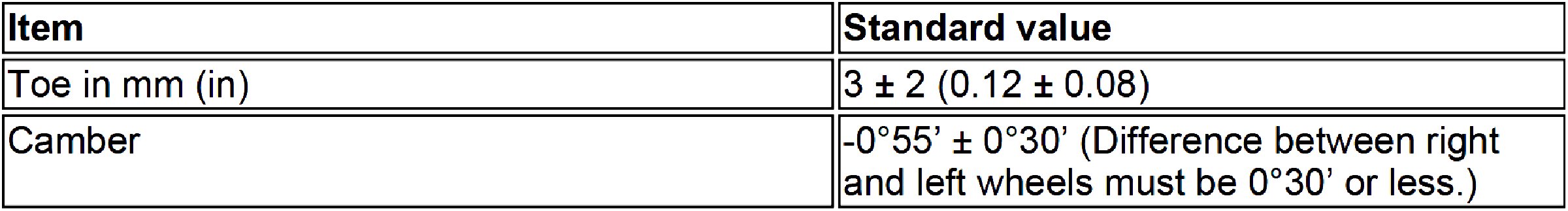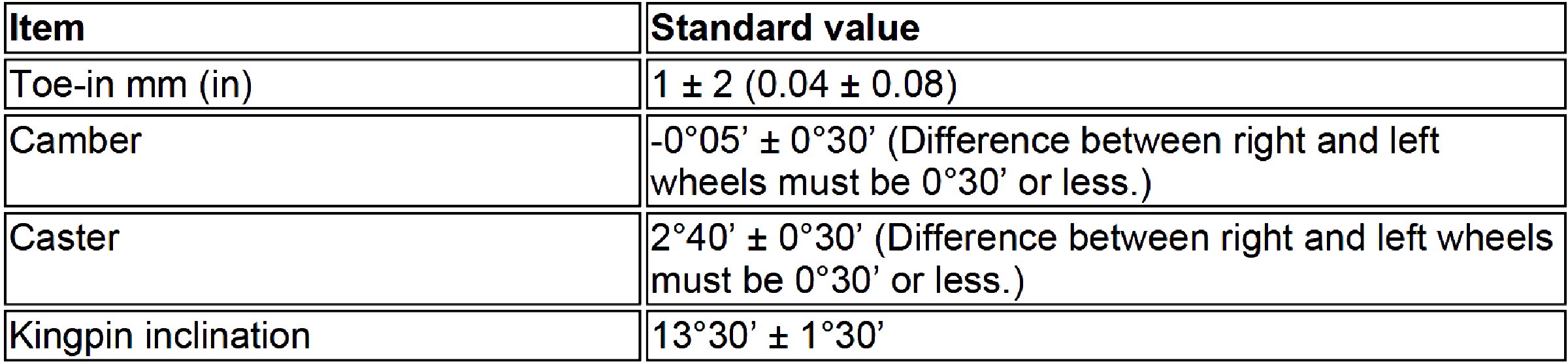 Wheel Alignment Specifications