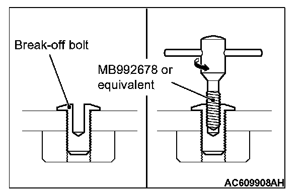 2. Use recommended tool screw extractor set (MB992678) or equivalent to remove the break-off bolt.