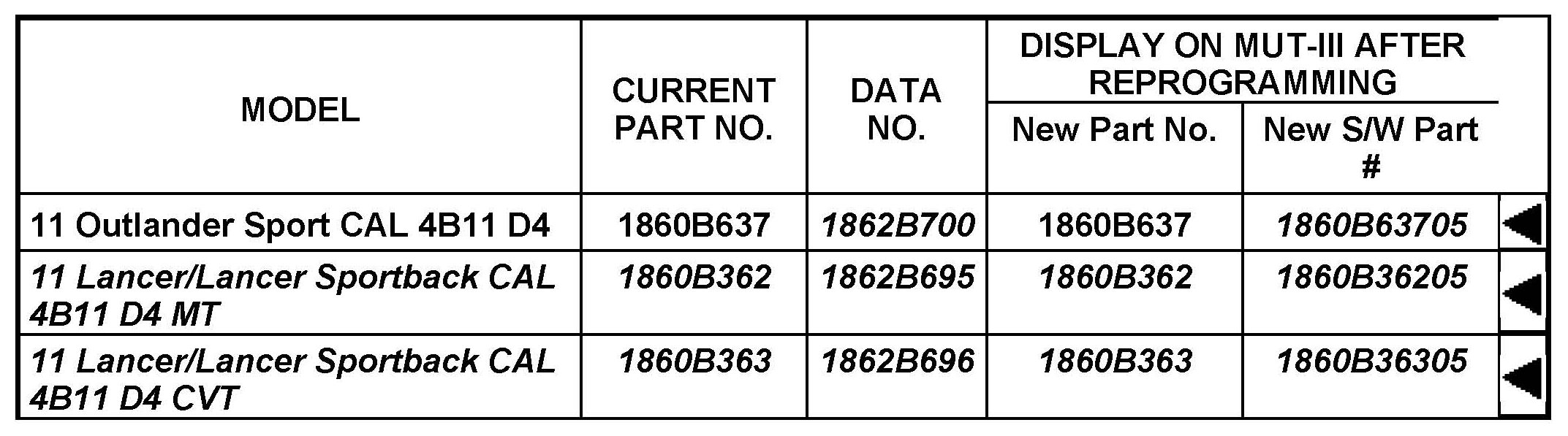 ECM Reprogramming Chart