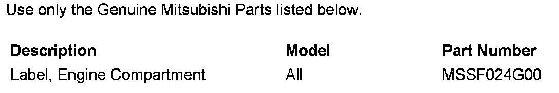 ^ "Engine Compartment/Control Module" label - p/n MSSF024G00.