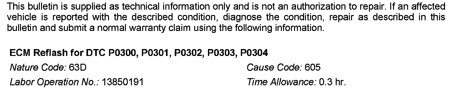 ECM REPROGRAMMING FOR DTCS P0300, P0301, P0302, P0303, OR P0304