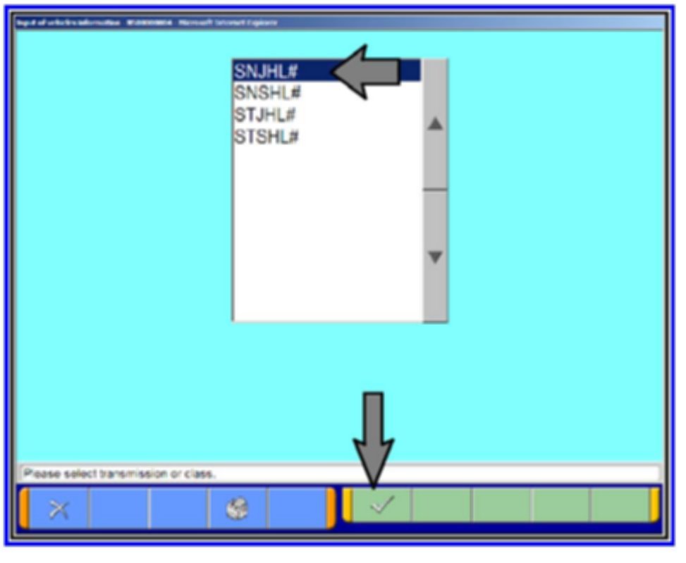 j. A window may pop up asking you to select either the transmission type or vehicle class. Click the check mark to clear the window.