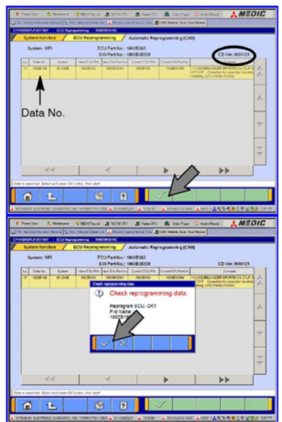 If more than one row is displayed in the table refer to the ECM Reprogramming Chart, select the proper Data No. for this procedure and select the appropriate row.