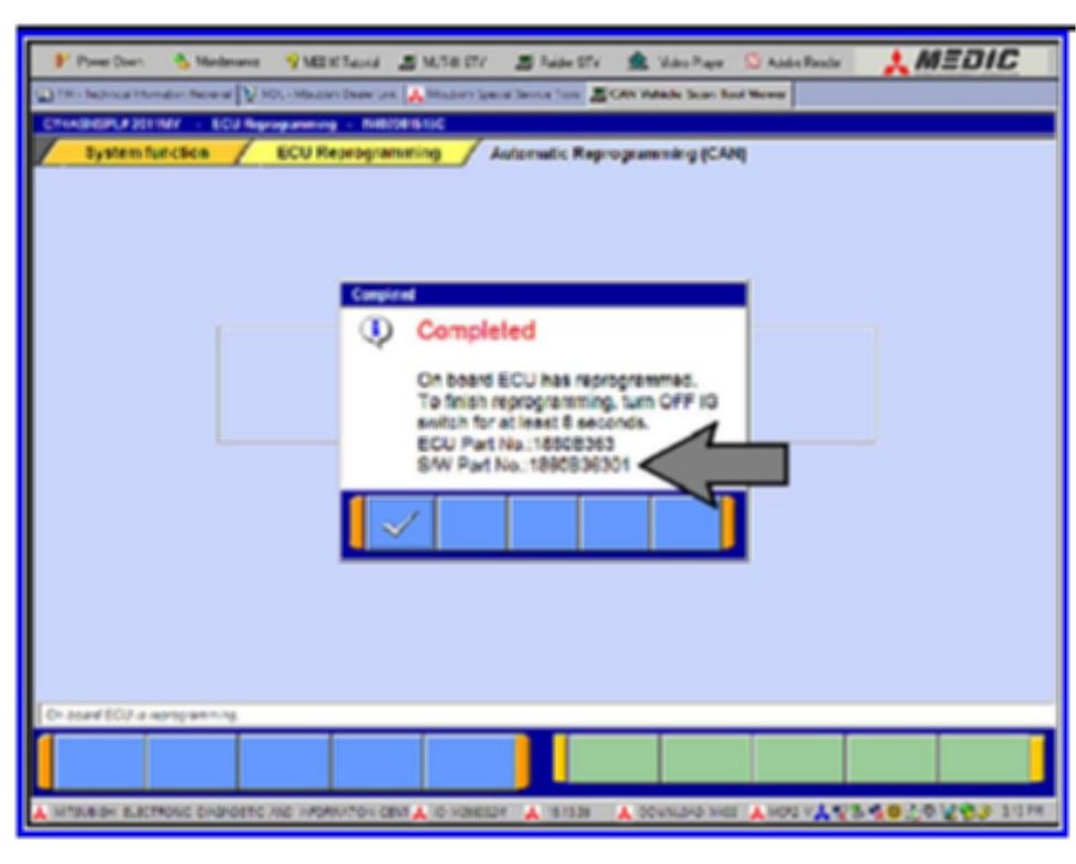 q. This message will display when ECM reprogramming is successfully completed. Confirm the "S/W P/N" displayed matches "New S/W P/N" in the table shown in this TSB.