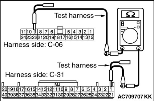 STEP 33. Check the wiring harness between joint connector (CAN1) C-06 and ETACS-ECU connector C-301 for line-to-line short. Measure the resistance at joint connector (CAN1) C-06.