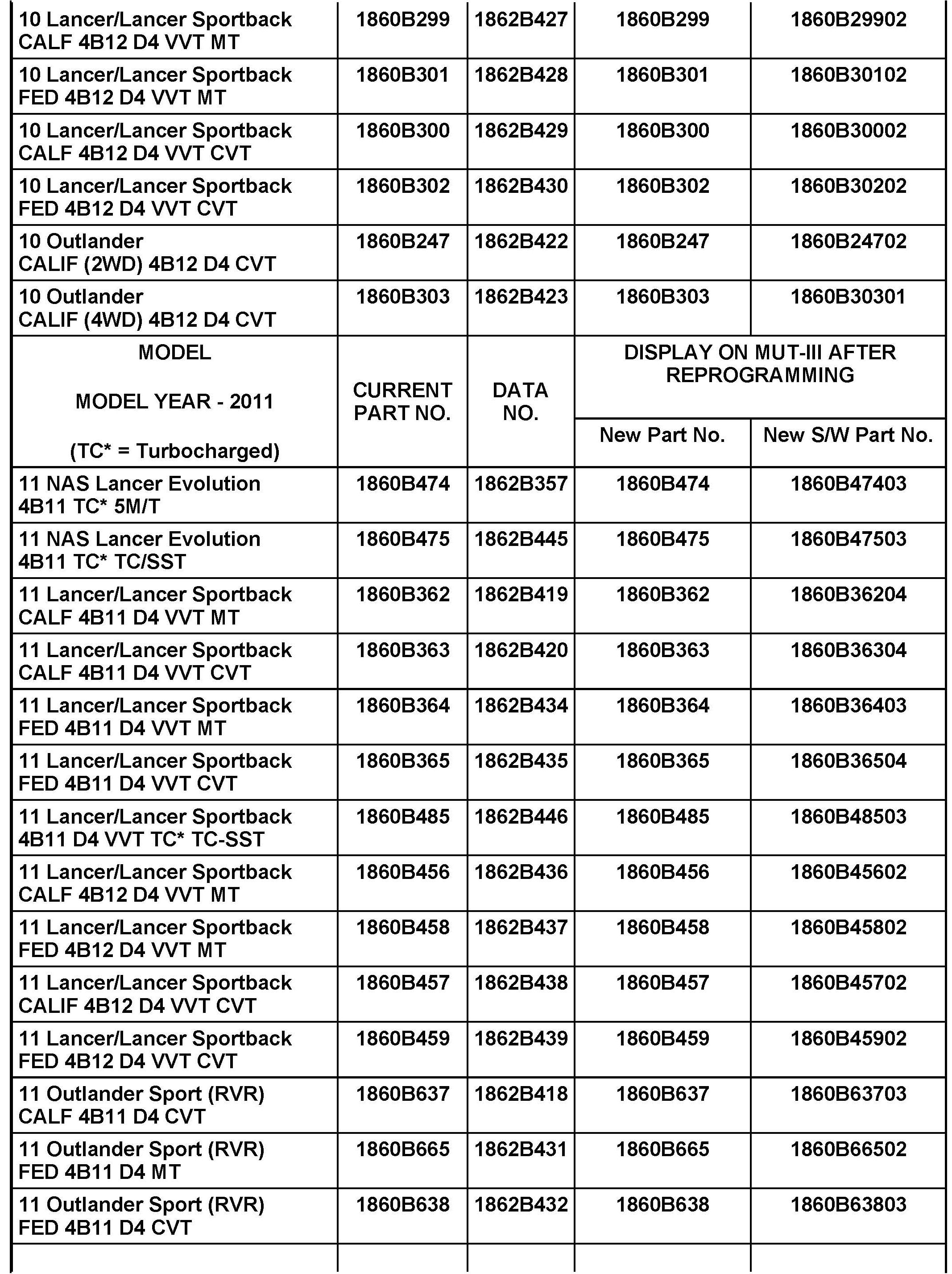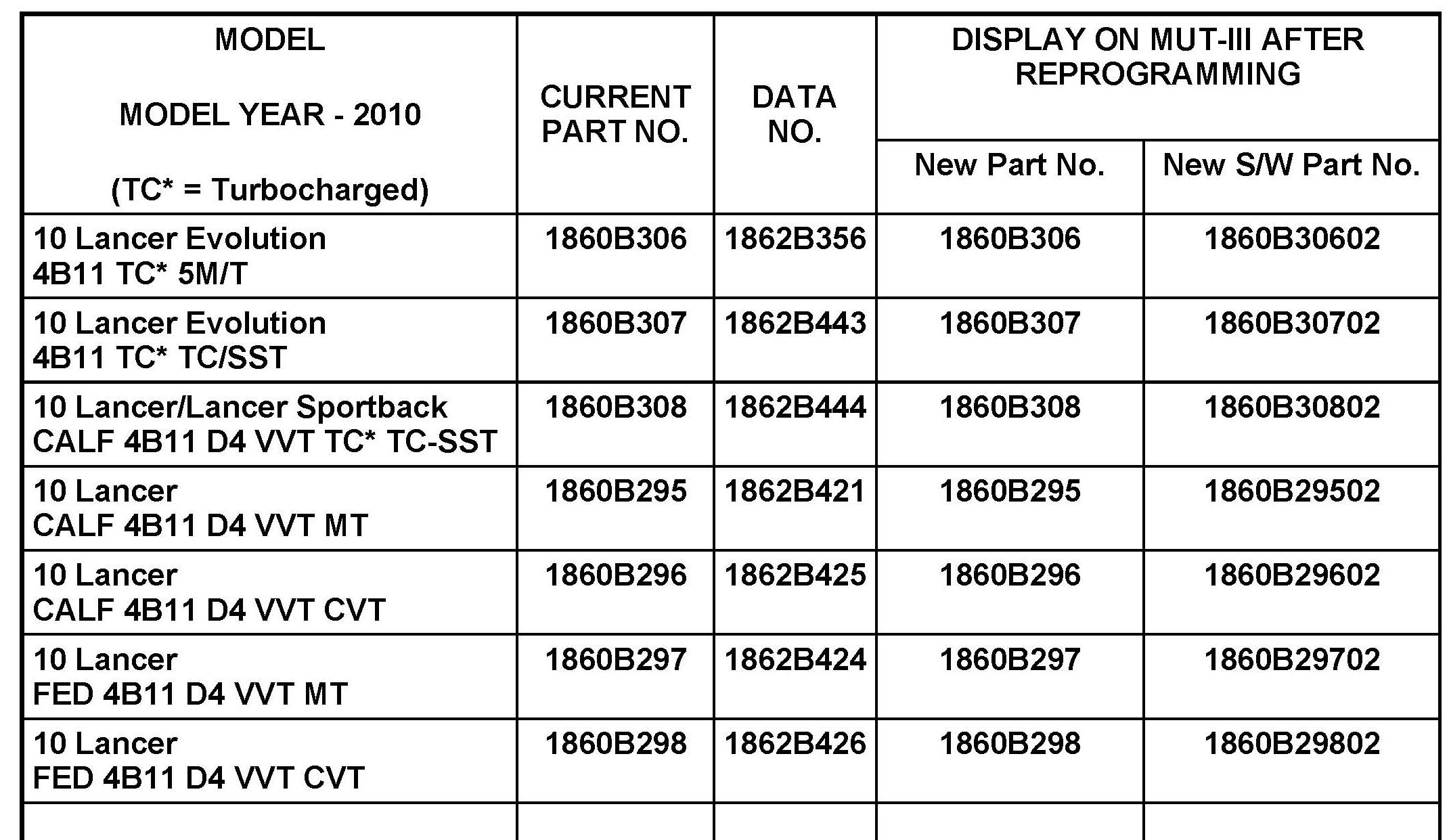 For affected Lancer Evolution, Lancer RAE and Lancer Sportback RAE vehicles only.