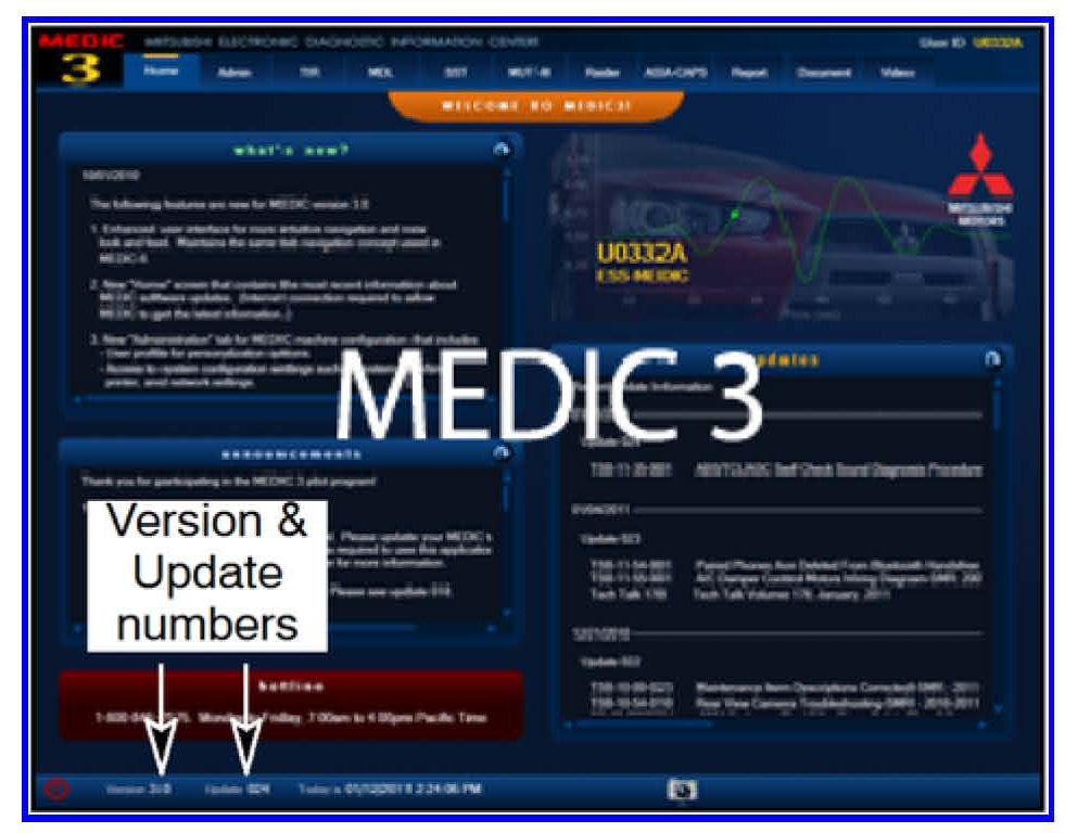 2. Verify the MEDIC 3 is at version 3.1 and at update 085 or higher.