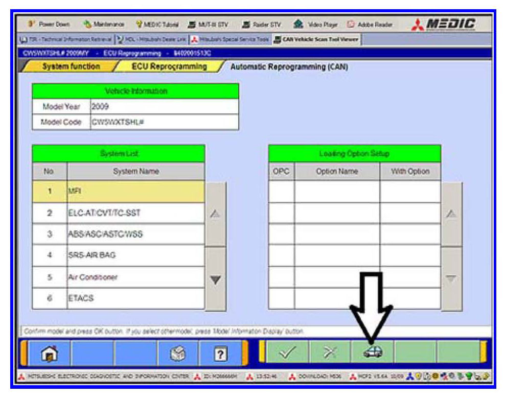 l. The Automatic Reprogramming(CAN) database screen will display.