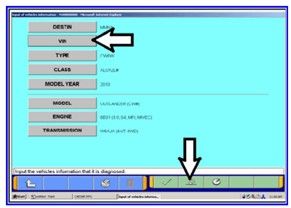 h. Click on the icon in the lower RH corner of the screen to have MUT-III automatically read the VIN. If a message appears saying that the VIN cannot be input automatically manually type the 17 digit VIN into the VIN field at the top of the page.