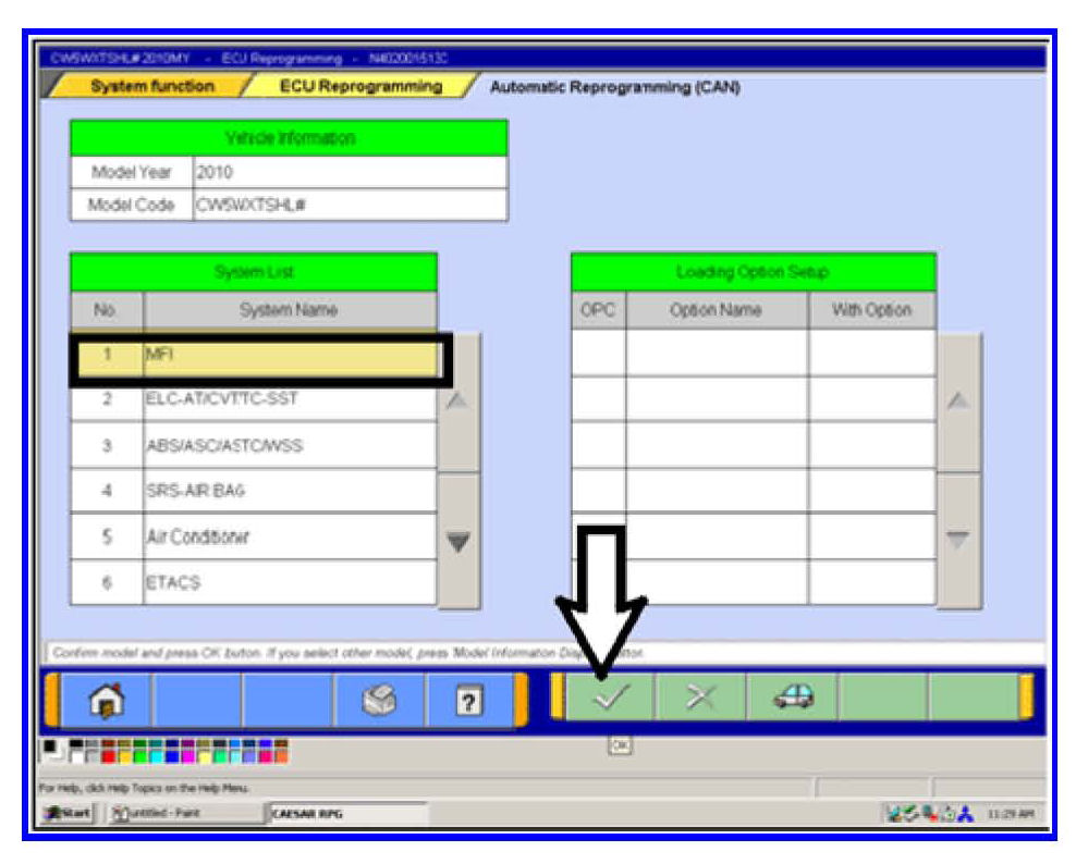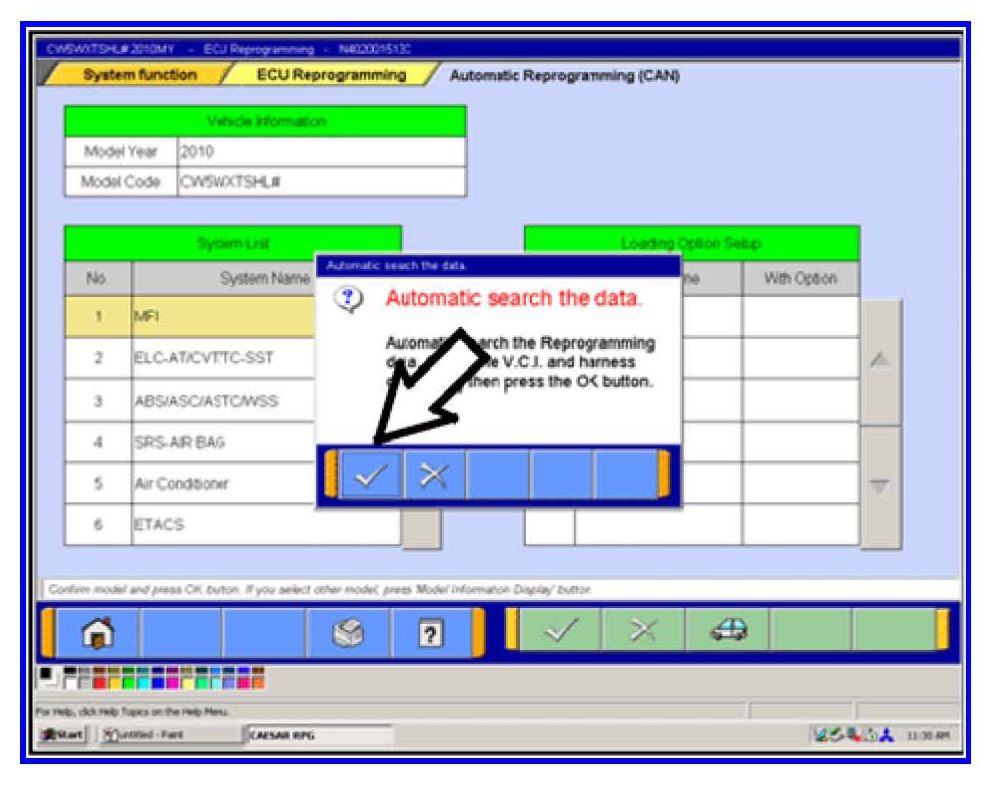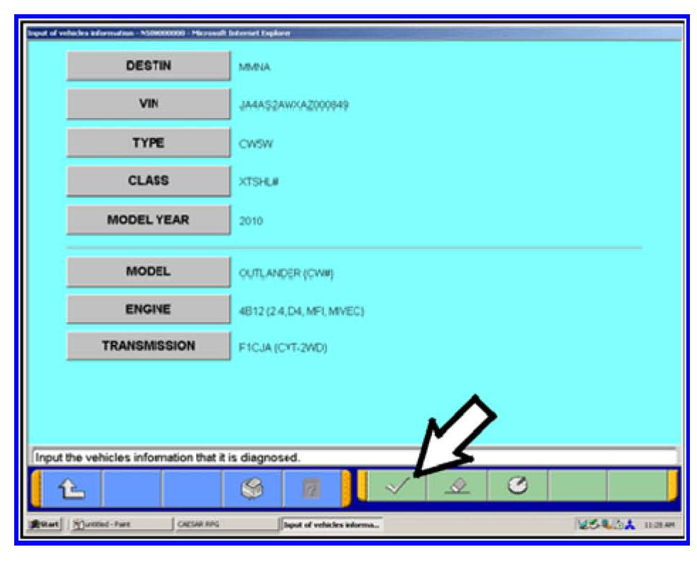 The list on the RH side of the screen appears for Outlander Sport (RVR) and Lancer based vehicles. For those models the check mark at the bottom of the page is not highlighted (inactive) at this time.